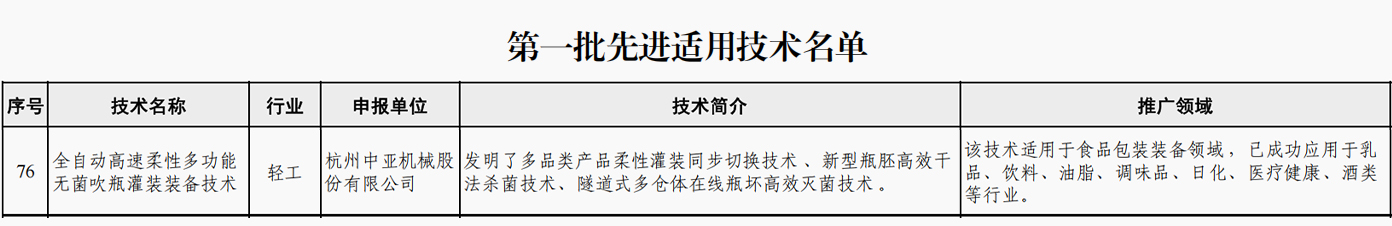喜报 | 中亚干法无菌技术入选工信部第一批先进适用技术名单
